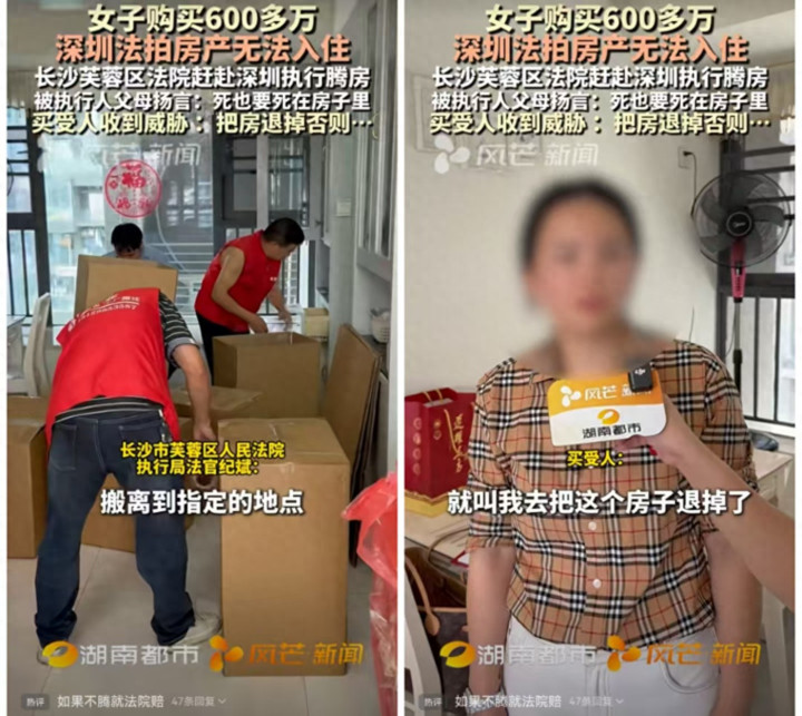 看了一段视频,又是两个不幸的家庭,据视频的信息,有个女子在深圳花600多万的法拍房,无法入住,并且受到原业主的威胁。